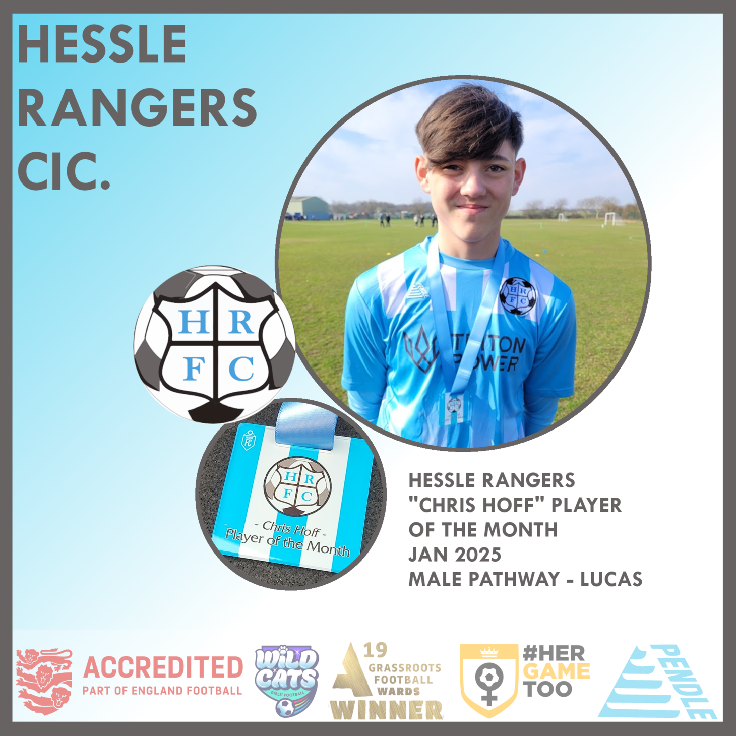 We are delighted to exclusively announce that the winner of the club-wide "Chris Hoff" Player Of The Month for all male teams in January was LUCAS from the U13 Jaguars.